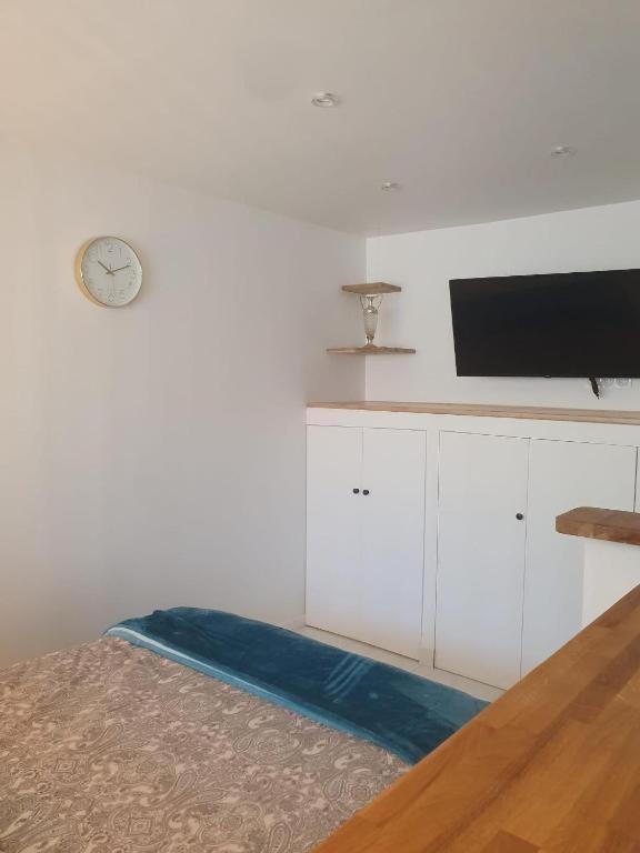 Cet appartement comporte 1 chambre, une télévision à écran plat, ainsi qu’une cuisine.