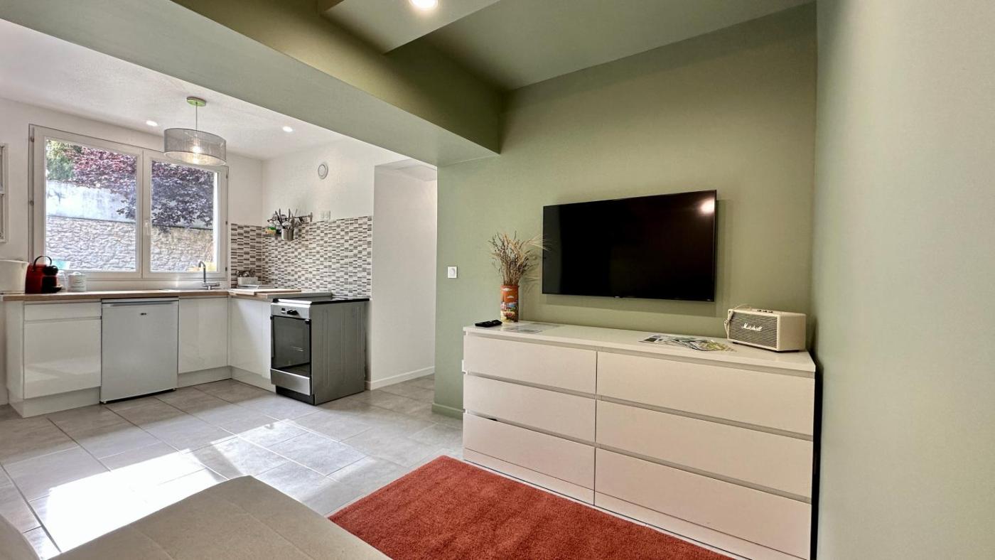 Appartement 1 Chambre. Featuring a private entrance, this apartment is comprised of 1 living room, 1 separate bedroom and 1 bathroom with a shower and a hairdryer. In the well-fitted kitchen, guests will find a stovetop, a refrigerator, kitchenware and an oven. Boasting a terrace with garden views, this apartment also offers a washing machine and a flat-screen TV with streaming services. The unit offers 2 beds.