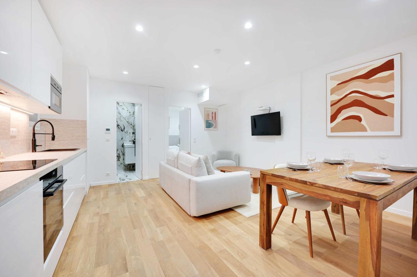 Appartement 1 Chambre. Boasting a private entrance, this spacious apartment also comes with 1 separate bedroom and 2 bathrooms with a hairdryer. Guests can make meals in the kitchen that features a stovetop, a refrigerator, kitchenware and an oven. The air-conditioned apartment features a TV with cable channels, a washing machine, a tea and coffee maker, tumble dryer as well as city views. The unit has 1 bed.