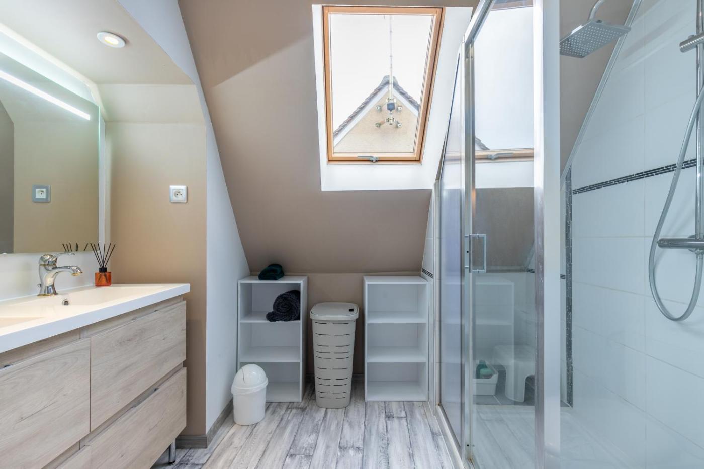 Maison 3 Chambres. Featuring a private entrance, this holiday home is comprised of 1 living room, 2 separate bedrooms and 1 bathroom with a shower and a hairdryer. In the well-fitted kitchen, guests will find a stovetop, a refrigerator, a dishwasher and kitchenware. Boasting a terrace with garden views, this holiday home also offers a washing machine and a flat-screen TV. The unit offers 4 beds.